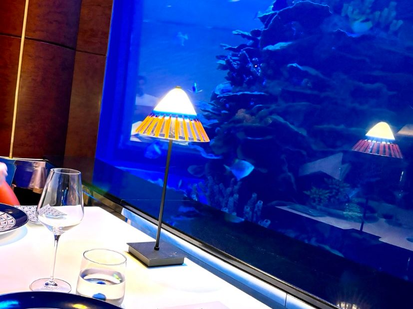 料理を食べながら見る水槽も絶景でした!