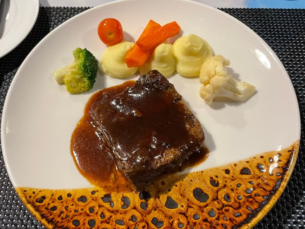 着席後は、HP掲載の食事ラインアップとは少し異なりましたが、ほぼ予定通りのコースメニューが運ばれてきました。どの料理もとても美味しく、ボリュームもあって、とても満足感ありました。強いて言えば、最後のデザートが意外とこじんまりしたものでした。