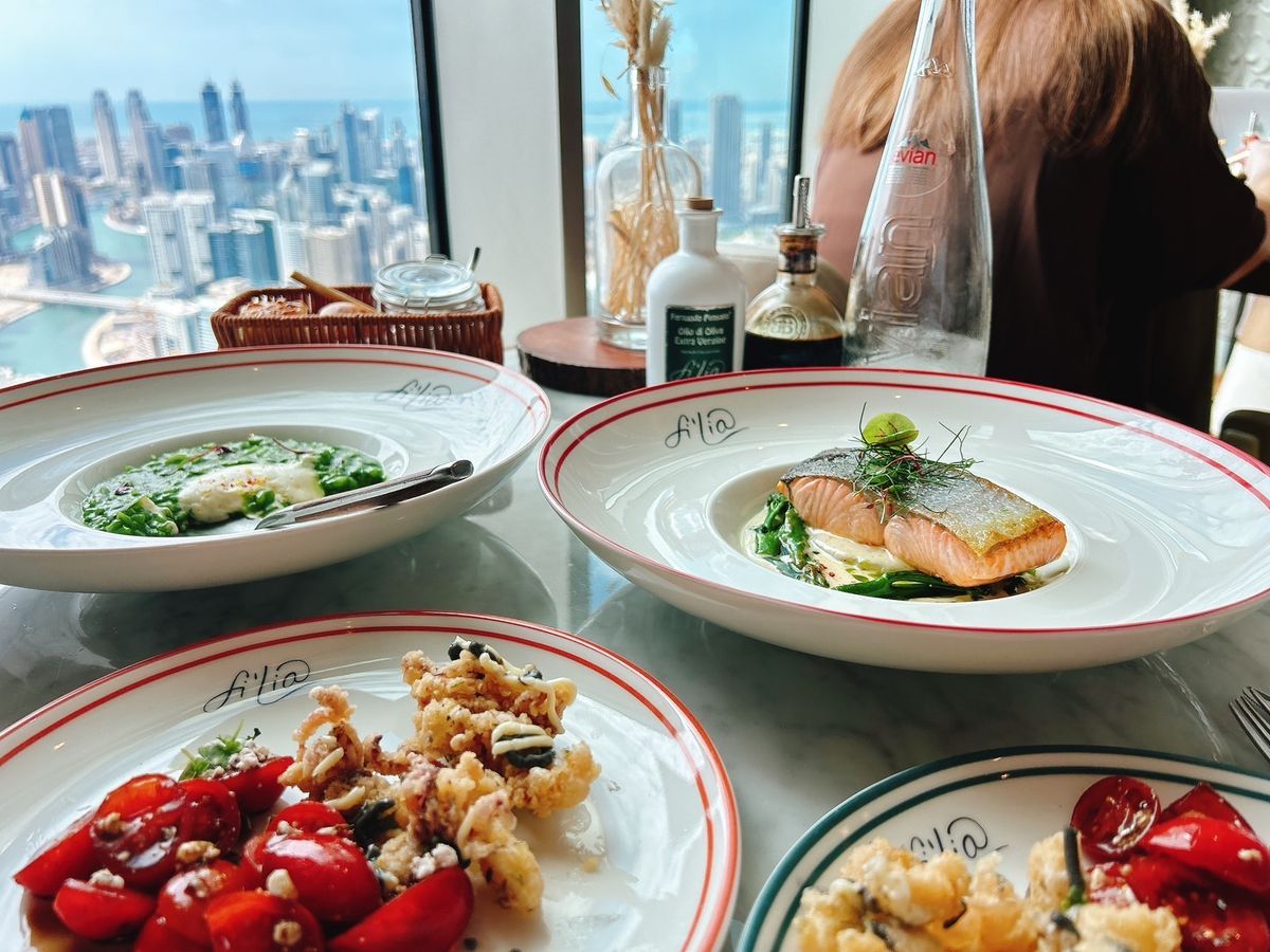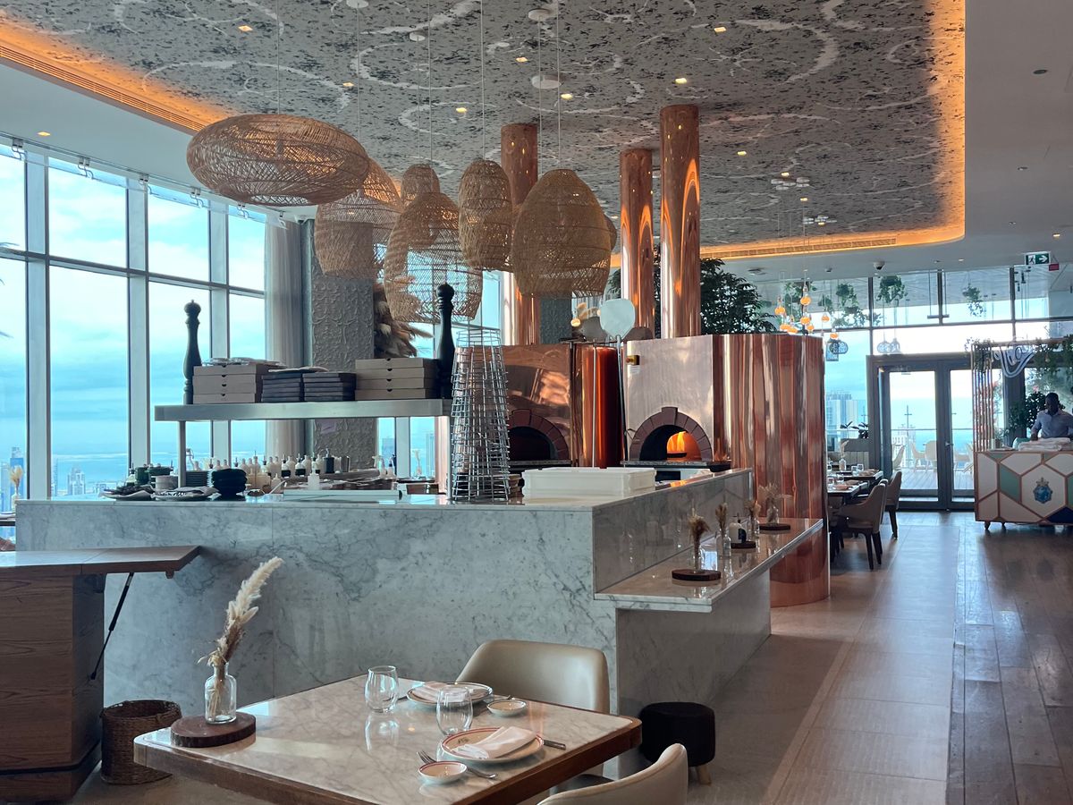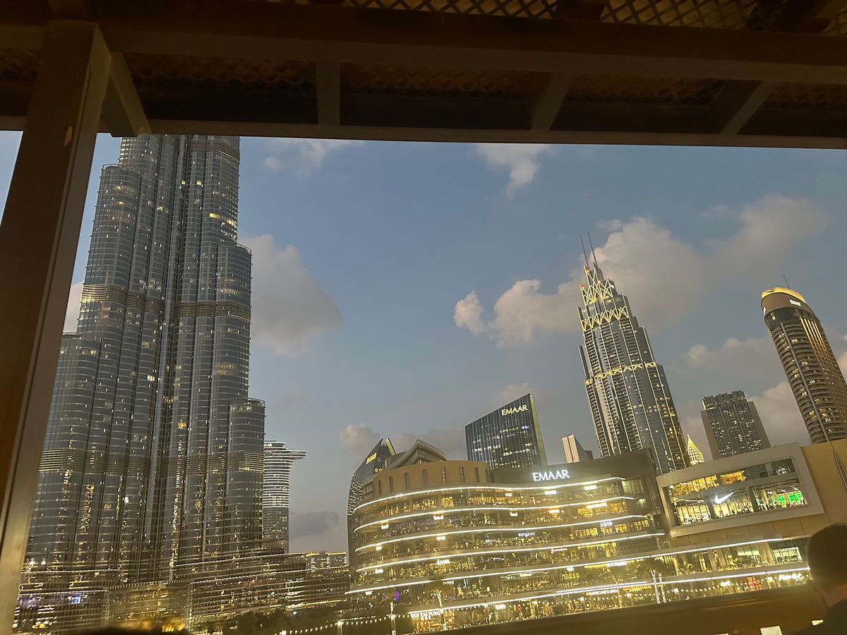 夜に予約をしましたが、立地もドバイの高層ビルに囲まれ圧倒される景色でした。