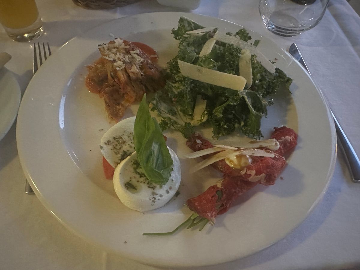 コースの料理も美味しかったです!!でも量が多く、前菜で4品、パスタとリゾット、その後にメインのお肉プレートが出てきて食べきれませんでした。でも、テイクアウトにしてくれたのでよかったです。コースに飲み物代は含まれておらず、水やデザートの時に聞かれたコーヒーorティーも有料だったので、そこは要注意!!!