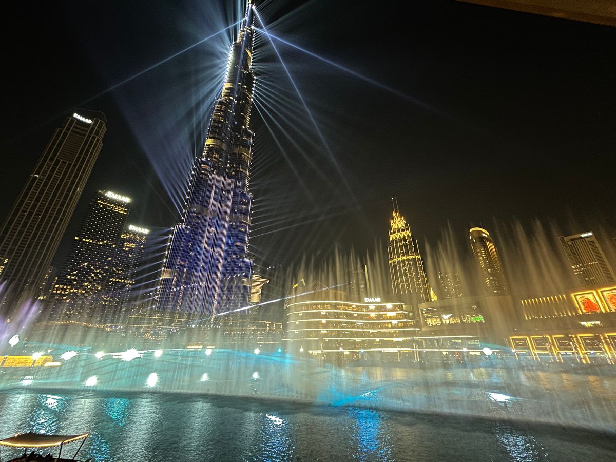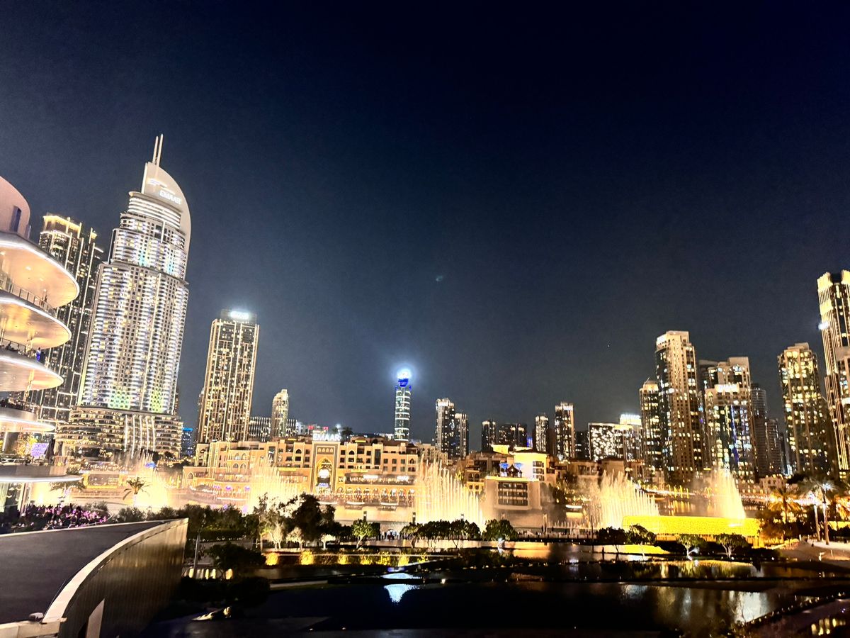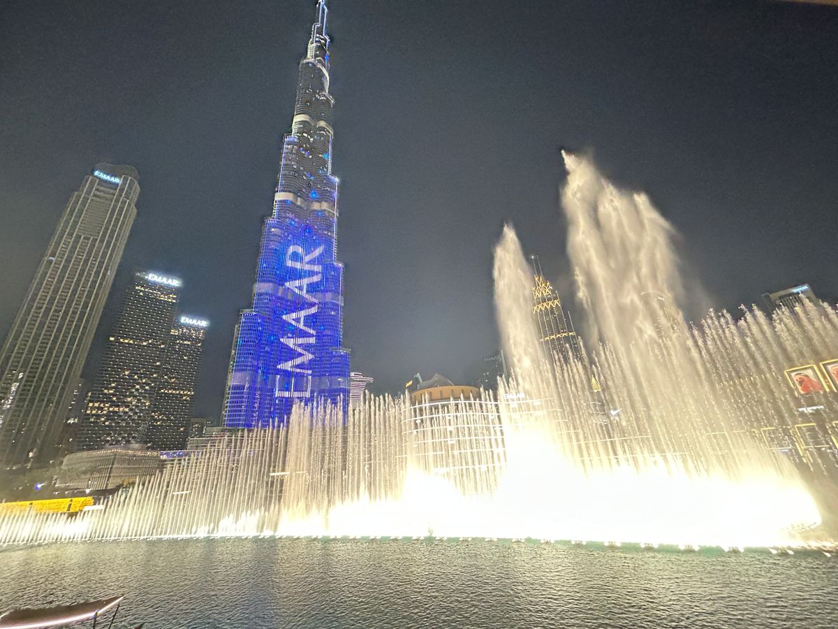 ブルジュハリファの噴水ショーをテラス席で眺めながらの夕食。1月で気候が良く、楽しいディナーとなりしました。