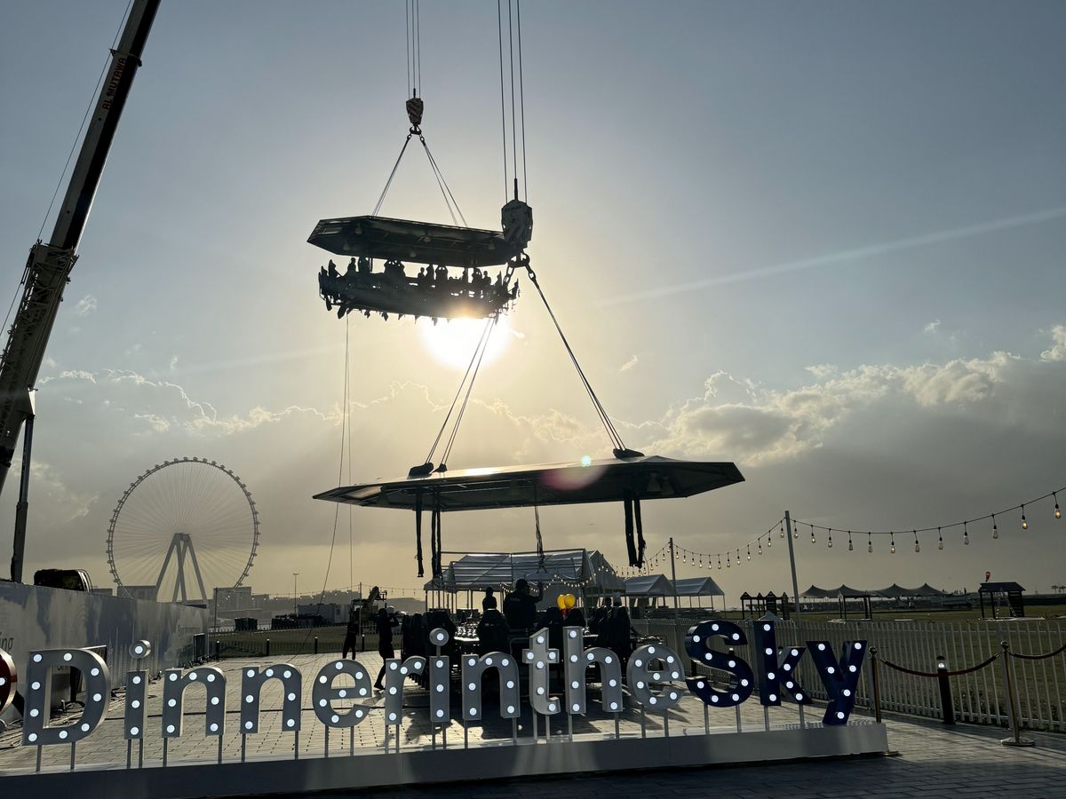 世界中にあるディナーインザスカイをドバイで経験してみようと思って参加しました。想像していたより高さはありませんでしたが、ニュードバイの良い立地にあって景色は素晴らしかったです。ただ、場所が開発地区で工事現場や更地の中にありました。もうしばらくすると周辺にも高層ビルが立ち並んで景色がもっと良くなるのではないかと思いますが、あまりビルが建つと遠くの景色が見えなくなるジレンマもあります。