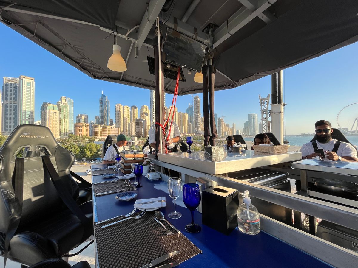 値段は少し高いですが、ドバイマリーナ、バージュ・アル・アラブ、パーム・ジュメイラ、アイン・ドバイなどのドバイの名所を上空から眺めることが出来て、美味しいコース料理を食べることが出来て、自慢話&絶対に驚かれる写真や動画を撮ることが出来るので、十分に元が取れると思います。