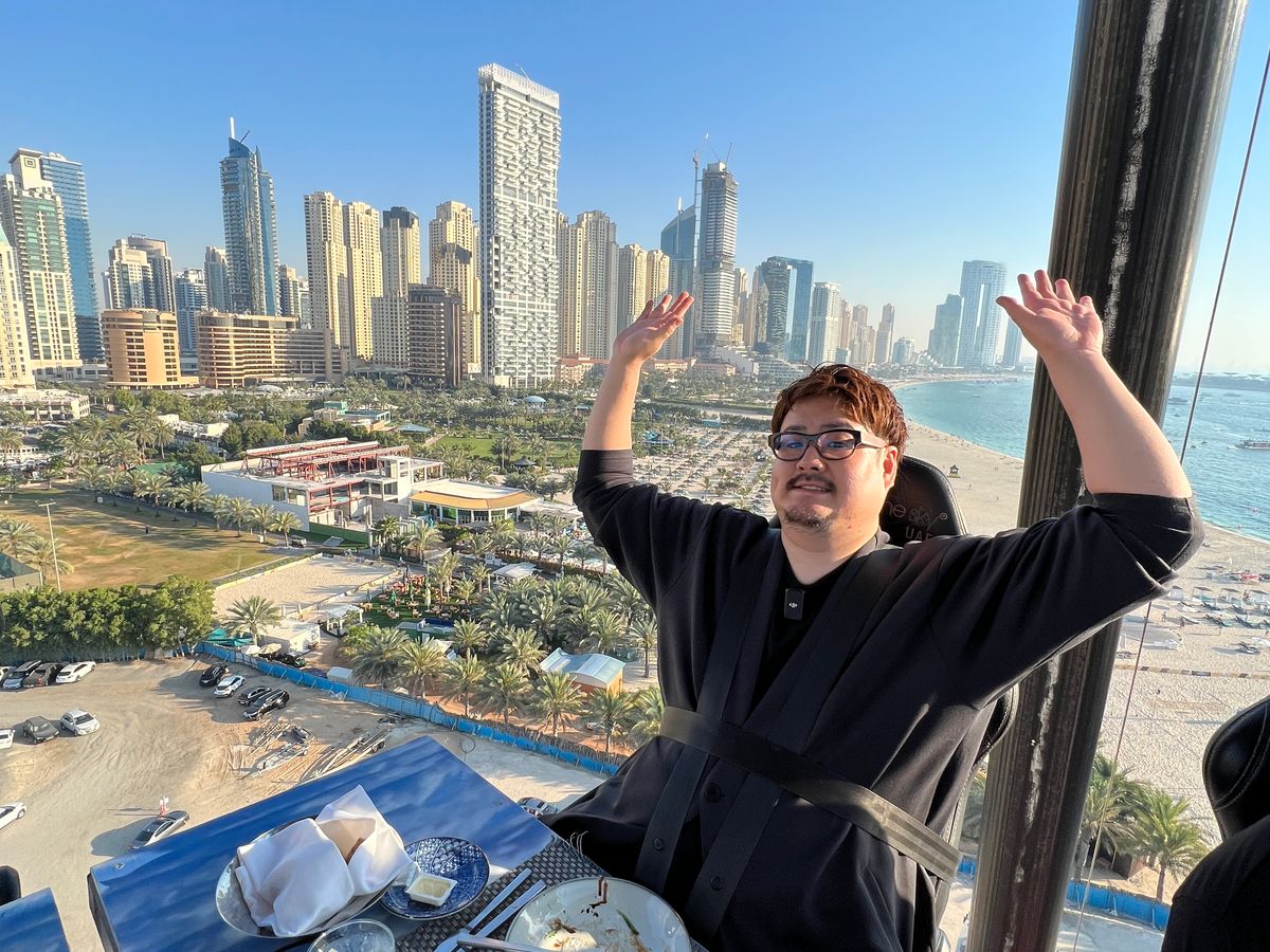 3年ぶりのドバイは、入国審査が1分(コロナ関連の資料は不要)で以前と変わらず、街もコロナ前と同じ活気に溢れています。前から気になっていた「Dinner in the Sky」に満を持して参加しました。