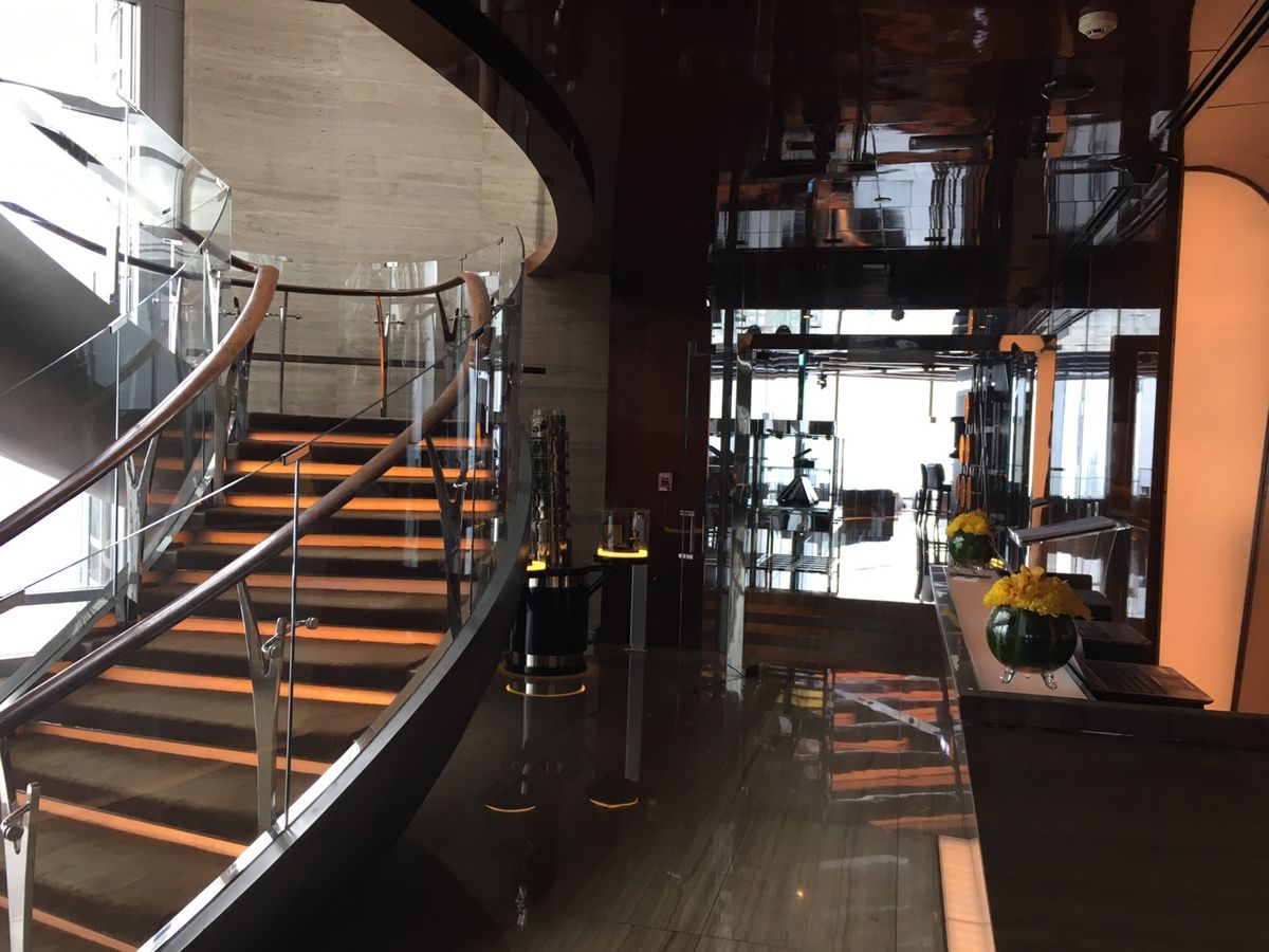 エレベーターを乗り換えて123階くらいまで行き、らせん階段で一階分降りてアトモスフィアへ入ります。
