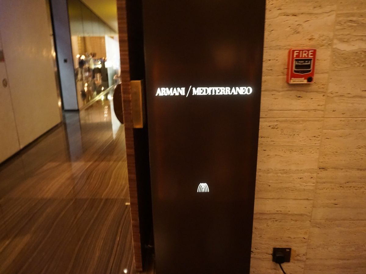 何らかの予約がないと入れないアルマーニホテルのロビーを通って、裏側にある専用エレベーターで一度地下一階まで下がります。