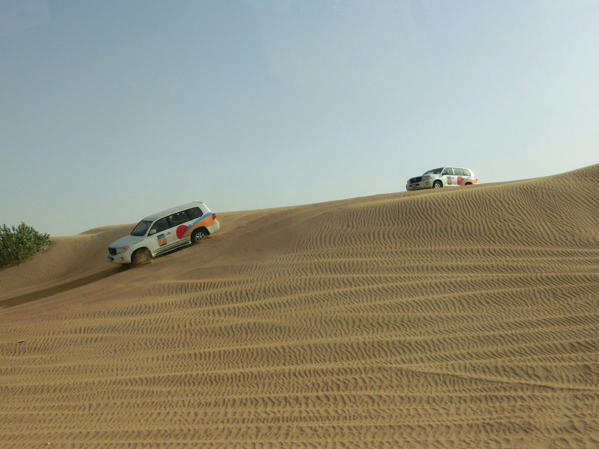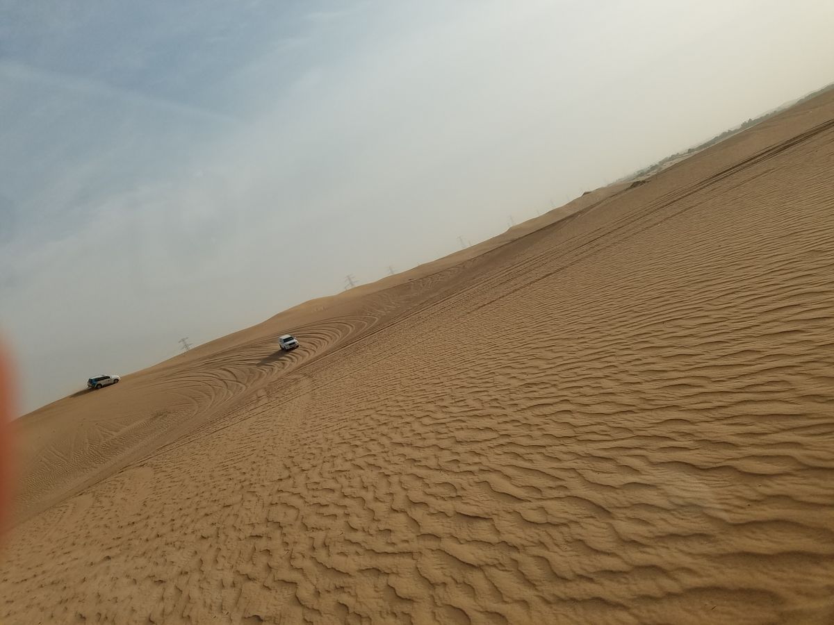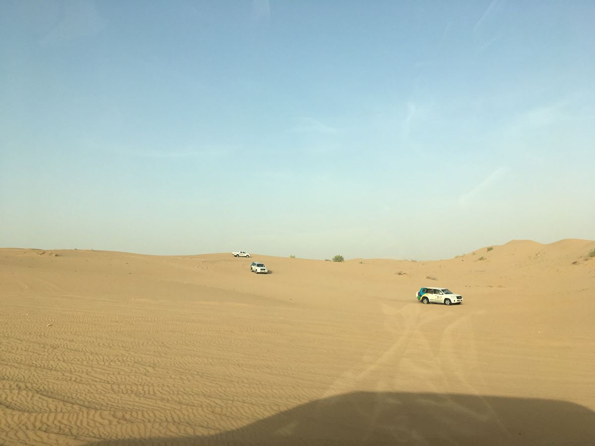 まずはホテルに迎えにきてくれ、そこから1時間かけてシャルジャ(お隣の首長国)方面に向かいます。道をされたら一気に砂漠へ!そこから30分くらい砂漠の中を爆走しました。思っていたよりスリルがあってとても楽しかったです。