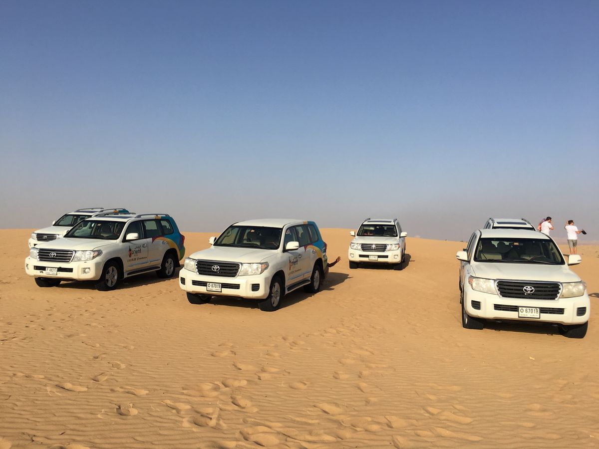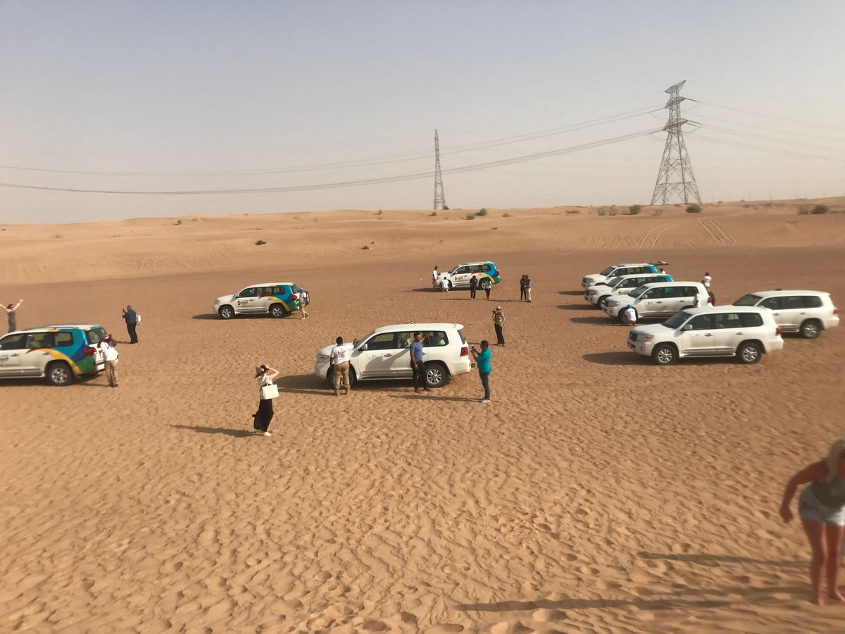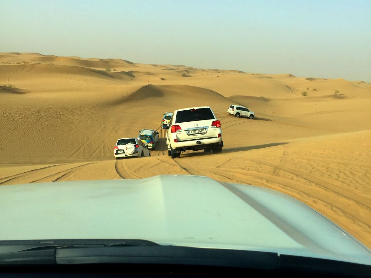 まずはホテルに迎えにきてくれ、そこから1時間かけてシャルジャ(お隣の首長国)方面に向かいます。道をされたら一気に砂漠へ!そこから30分くらい砂漠の中を爆走しました。思っていたよりスリルがあってとても楽しかったです。