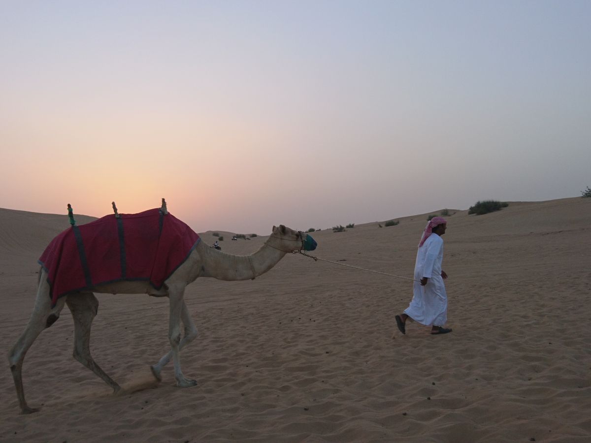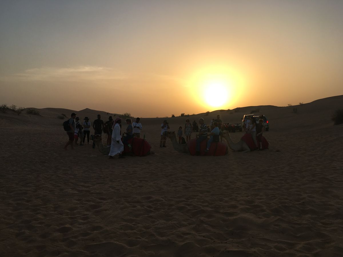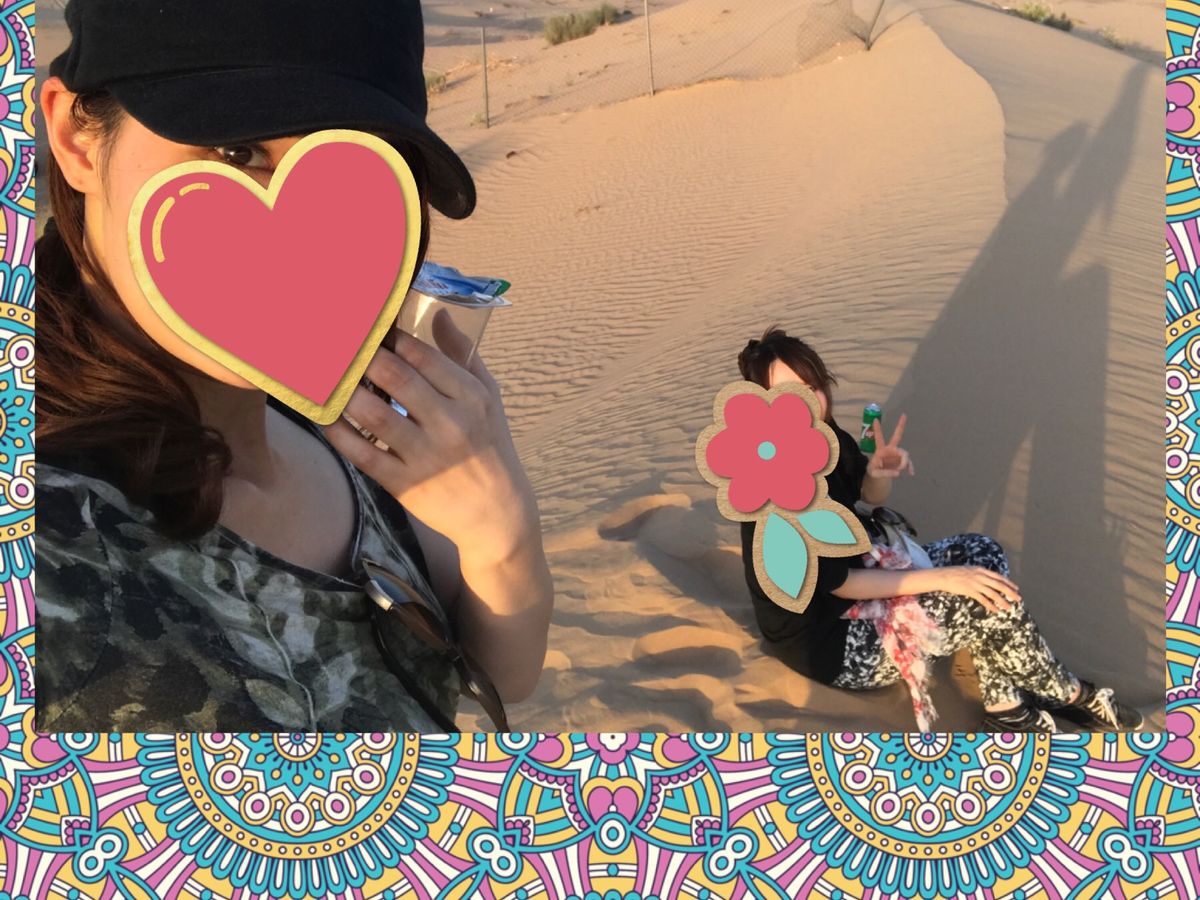 ラマダン2日目にアラサー女子2人で参加しました。同乗者はフランス人3人組とアメリカ人男性1人。砂漠ドライブはスリル満点でおもしろかったです!写真ポイントで車を降りると気温40度近くで暑いですが、車の中は涼しくていつでも乗り込めるので平気です。ラクダ乗りは短時間、しかも2人ずつ乗らないといけないので乗ってるとこの写真撮れない!というわけで4WD車に同乗してたアメリカ人男性に写真を撮ってもらいました(^^)サンセットの1時間前には会場?に到着。この頃には気温も30度くらいで暑さは平気でした。カウンターで無料のソフトドリンクゲット。おかわり自由!ラマダン中でもここは水分補給OKです!水タバコやタトゥーは人が多いので後回し。サンボードをする丘に歩いて登りました。けっこう高くまで登るので足腰体力いります。笑 けど誰もいないので貸し切り気分で写真を撮ったり景色を見てゆっくり過ごしました。砂漠も一望でき、サンセットも綺麗に見れたのでお勧めポイントだと思います!日が落ちたあとは水タバコやヘナタトゥーを楽しみ、夜ごはん。ベリーダンスのかわりに男性のファイヤーショーやグルグルまわるダンスがありました。8時半アクティビティ終了。ドバイで砂漠体験ができてよかったです(^^)