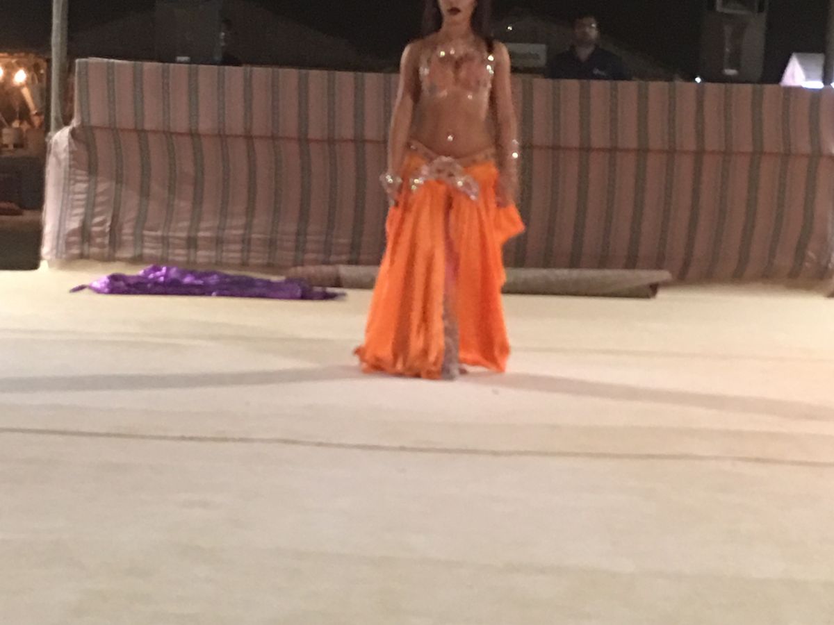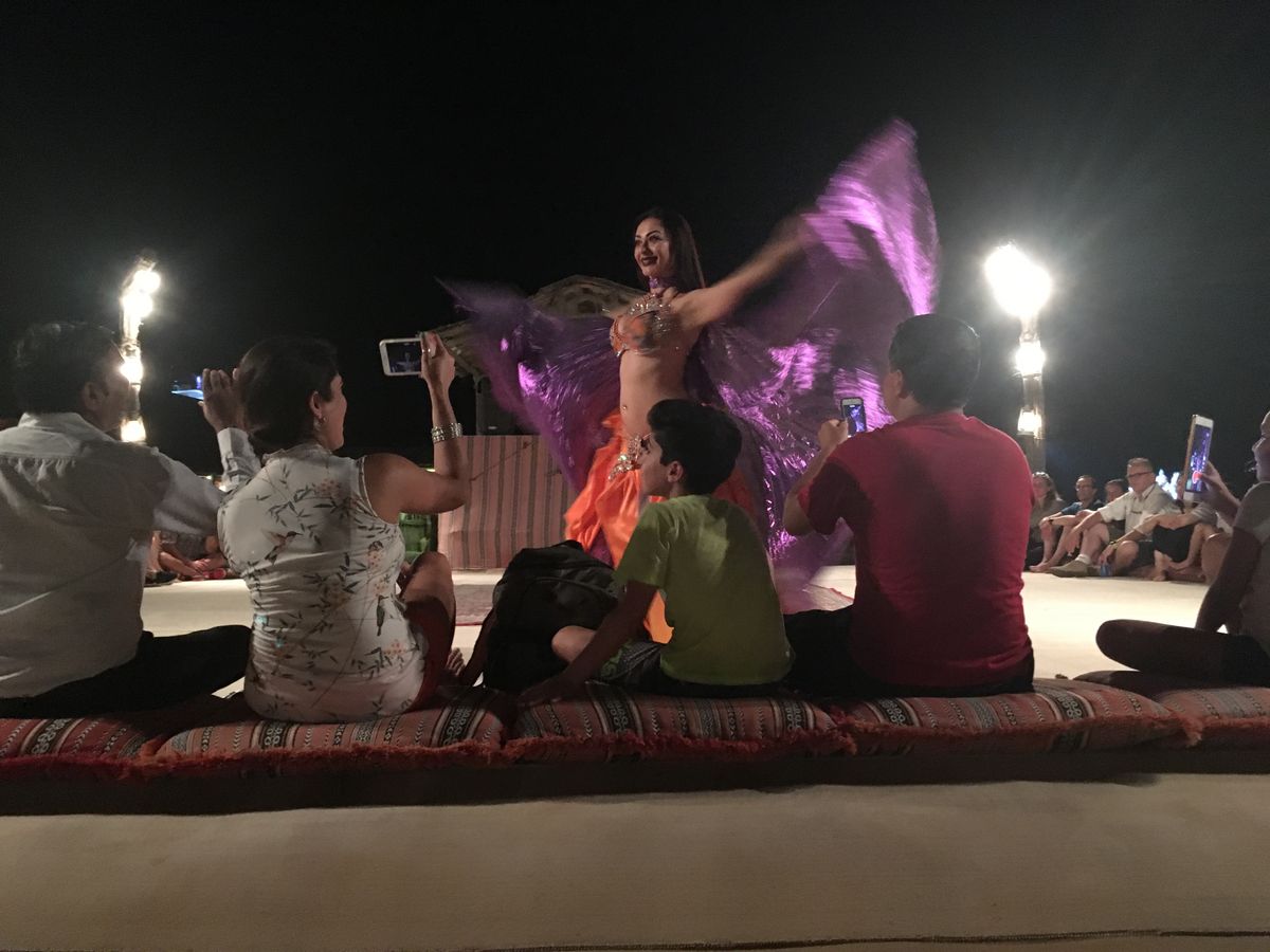 そして食後は中心に置かれた舞台上で、民族ダンス?のようなひたすら回旋し続けるダンスと、ベリーダンスのショーが楽しめます。お客さんを巻き込んで盛り上がる姿は圧巻!だんだん暗くなってきて、ダンスが終わる頃には星も見えました。15時45分に出発して21時に解散ですが、時間もほどよくあっという間に過ぎるほどでした。