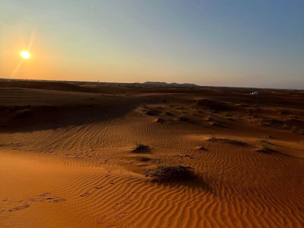 その後、タイヤの空気を抜き砂漠へ。中々激しく酔いやすい人は酔い止め必須。途中で砂漠に出て写真タイム。とても綺麗な夕日が見れました。ただ、砂はめちゃめちゃつきます笑 汚れてもいい服でいきましょう。