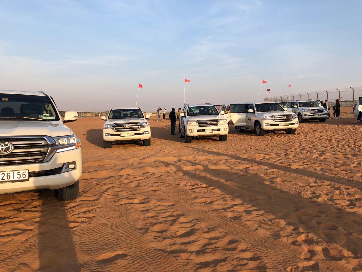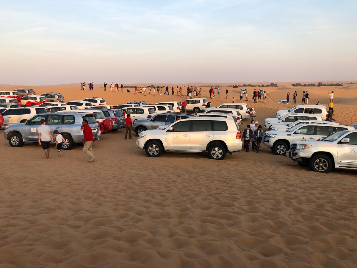 ピックアップ時間が二時間も早くなりどうなるかと思いましたが催行。二時間かかって集合場所に、タイヤのエアーを抜いて出発、30台以上のランドクローザーが砂漠を走る様は圧巻です。揺れすぎて写真が撮れないので、前のランドクローザーの走る模様を次に繋がる車輌は、止まって撮影出来る様にした方が良いと思います。キャンプに戻り、バーベキューディナー。悪くは有りませんが期待しない方が良いと思います。サービスで駱駝、鷹撮影、ヘナサービスがありました。かえりは100台余りのランドクローザーがエアーを入れるので順番待ちが大変です。ベリーダンスを4曲の所、ガイドに言われて、1曲で帰りました。残念でした‼️