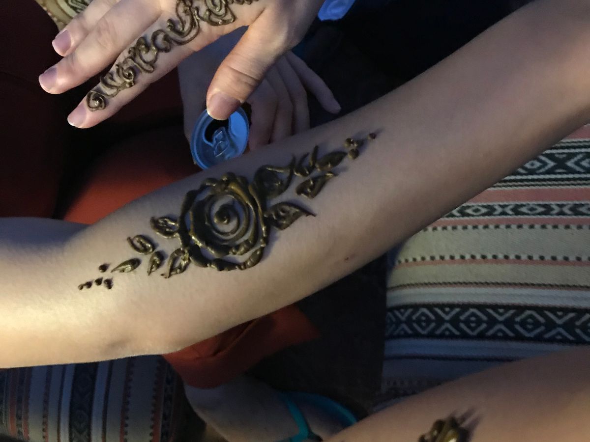ヘナタトゥーは1分程で書いてくれて、一人一人微妙に違う模様を書いてくれます♪乾くまでに少し時間がかかるので触ったりしないように注意が必要です。