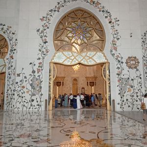 グランド・モスクでは、女性が様々に頭髪を覆われていて、ファッションショーのようでした。ガイドの方も親切に説明いただきました。