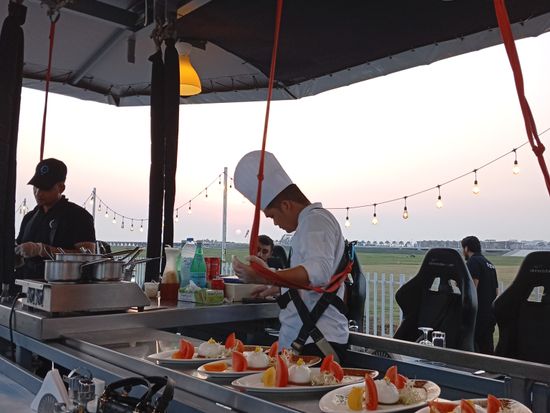 ただ、落ち着いて食事は出来ない。なぜならば落下防止用のシートベルトで固定されや、足元はステップから離れ不安定である。しかしこれが楽しければ訪れる価値は充分にある。