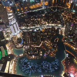 すいていたので規定の時間よりも早めに入れてもらえたうえ、制限時間がないので、明るいダウンタウン→アラビア海に沈む夕日→夜景→上から見下ろすドバイファウンテン…と、すべての景色を楽しむことができました。2時間くらい居座ってしまいました(笑)降りる頃にはすれ違う上りエレベーターの前が大行列だったので、いいタイミングでした。