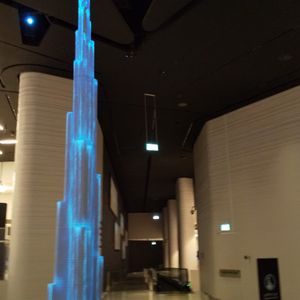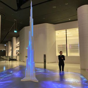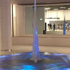 荷物チェックの後も、なかなかすぐにエレベーターにはならず、アットザトップの位置を下から見上げるスポットやバージュカリファ建設の歴史を伝える展示スペースが続きます。