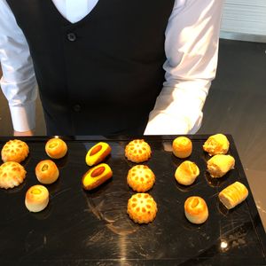 飲み物やお菓子は椅子が置いてあるエリアで配られていましたが、トレーにのったものをスタッフさんが持ってきたら、それを自分で取りに行く感じです。