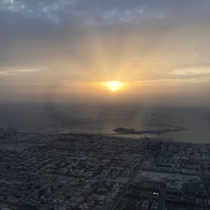 世界一のビル。ドバイに来たからには絶対に登らなくちゃです。12月31日の夕方にに合わせて予約して行きました。長蛇の列の中、並ばずにビップ待遇で入る事が出来たので気分も上がります。カウントダウンの花火を見るためにもう夕方前から会場に入って行く人の流れも上から見えました。夕日も綺麗でした。