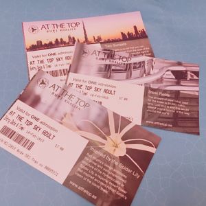 飛行機で成田からドバイに到着後(早朝)、ホテルへのチェックIN時にチケットをフロントにて無事受け取ることが出来ました。 その後、ベルトラの市内観光ツアーに参加した後、ドバイモールにて解散し、バージュ・カリファの受付へ。(16:30入場)