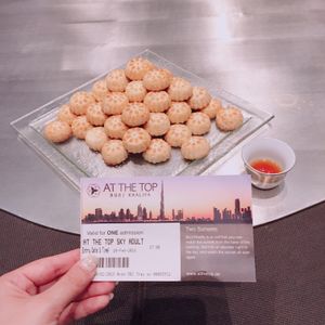 せっかく行くならと思いアット・ザ・トップを予約しました。前室ではアラビアンコーヒーとアラブとお菓子が振る舞われ、148階に着くとジュースとまた別のお菓子がもらえました。どれもとても美味しかったです。