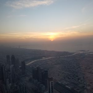 朝から砂ぼこりが舞って見晴らしが悪かった。日の入り前を予約して登ったが見通しの悪さがあまり改善されてなかったのは残念。予約しておけばあまりならばないような体験談があったが、17時予約で16時45分に並び始めたが上に到着したのは17時50分頃。折角日の入り前後を見られる時間を予約したがあやうく日の入り後になるところだった。結局、砂ぼこりで夕日は見られなかったが、夕暮れと夜景が見られたのは良かった。帰りは124階から優先エレベーターで降りられたのは良かった。148階まで登ってない人は大行列に並ぶ必要がある。ドリンクや菓子はなくても良い程度。駅から歩くと結構遠く20分はかかる。