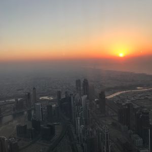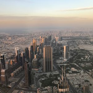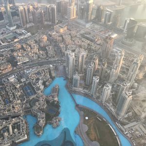 ドバイに来たら行かないわけがないブルジュハリファの展望台。555mからの景色はもちろん最高です。夕日はみるべきです、みんなが窓際にくっついて写真を撮ります。