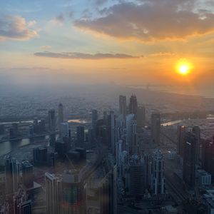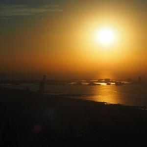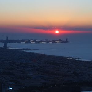 ショッピングモールの中の受付カウンターは長蛇の列。じっと並んで、「あー、予約時間が・・・。」と焦りつつ待つ。予約を見せると「あんたはあっち。」と指さされ、奥の入口へ。なんだ、直で行けばよかったのね。エレベーターで上がると、素敵なお兄ちゃんが飲み物のオーダーを取りにきてくれます。お菓子は「お好きなだけどうぞ。」とテーブルの上。たくさんの人でごった返していましたが、しっかり日没も見えました。砂煙でかすんでいたけどね。