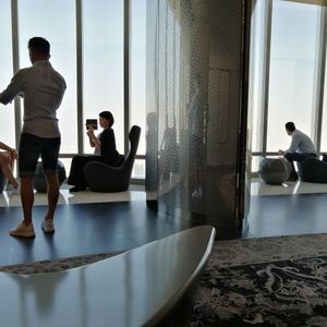 17時に予約しました。この日の日の入り時刻17時41分 混雑時期である程度の待ち時間は覚悟していました。列になっている所でまずVIPのシールを胸に貼ってもらい入り口へ通される、すでに17時15分は過ぎている。エレベーターに案内されたのは17時45分148階まで一気に上がれるはずが、途中の訳の分からない所で降ろされ待機、また違うエレベーターで148階へ 専用ラウンジでスイーツとドリンクサービスのはずが何も出てこない ごちゃごちゃした中でコーヒーを飲んでいる人もいるけど私達には何も案内されない ようやく展望台のある125階へ案内されて外を見るけど既に日も落ちている 高すぎて外を見るだけでは何も見えず覗き込んで下を見るとチラホラ電灯の輝き この時すでに18時40分 一人140ドル返してくれ!