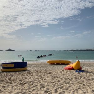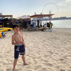 ホテルからタクシーで向かいました。ドライバーさんがパームジュメイラについて色々説明していただいている間に到着。ロッカーは何度も出し入れできるので家族で一つ借りていれば十分だと思います。レンタルタオルは長蛇の列になっていたので宿泊ホテルから借りてきたほうが良いかもしれません。口コミで事前に読んでいった通り、ビーチチェアは先に取っておかないとすぐにいっぱいになっていましたが、奥のアクティビティの方まで行けばすいていますし、ビーチに陣取るほうがゆったりしていて良いと思います。飲食の持ち込みは禁止で入場口でしっかりカバンの中身をチェックされます。園内の飲食物は非常に高いです。。。