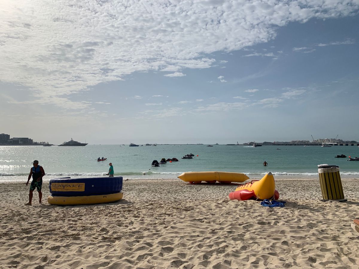 アクセスはドバイ空港からメトロに乗り、ダマック・プロパティーズ駅で下車しトラムに乗り換えジュメイラ ビーチ レジステンス2で下車し徒歩10分でビーチに到着します!