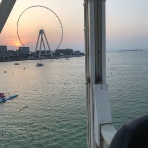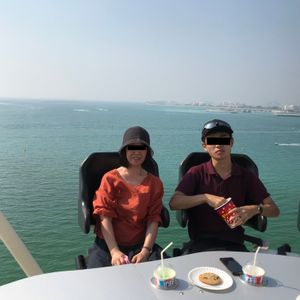 予定が変更になり日にちの変更希望をベルトラさんにしたところ、催行会社に連絡が取れるまで親切に何度も連絡くれました。その節はありがとうございました。最終的にはベルトラさんか催行会社に連絡してくれれば大丈夫とのことでしたが近くに行ったので、直接行ってみたら乗せてくれました。まあ、ガラスキだったので断らなかったのかもですが。 タクシーに乗りバウチャーにタクシーで行く場合:「The Beach, JBR」とお伝えくださいと書いてあったので、その通り伝えましたが運転手さん分からずスマホで地図を見せて行ってもらいました。 私達は行ってすぐ人数が集まったので飲み物とポップコーンを受け取って乗りましたが他の人は乗り合い人数(10人位)が集まるまでに飲み食べ終わっていました。そんなに高くないので、怖くもなくスリルもなく海辺に飽きたらちょっと乗ってみようかぐらいの感覚で乗るような乗り物でした。 景色がよかったのと、係の人が自分たちのスマホで撮ってくれたのが良かったです。 わざわざ時間を裂いて行くにはイマイチだと思いました。