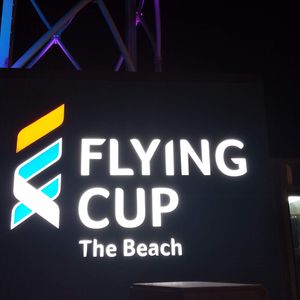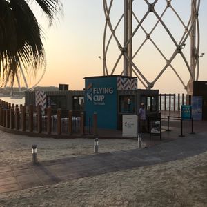 せっかくなので、ビーチの端に建つアトラクション。フライングカップドバイを試してみました。予約を受け付けてくれるか少し心配していましたが、まったくの杞憂で、受付でバウチャーを見せると、「あーVELTRA!」と言って準備をしてくれました。