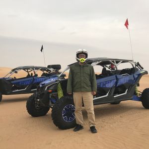 私たちは、バブ・アルシャムスデザートリゾートスパホテルからでしたがきちんと送迎してくれました。6時45分ピックアップだったので朝ごはんを急いで食べいざ砂漠へ!混載と書いてありましたが参加は私たちだけだったので、サービスで2倍の距離を運転させてもらいました。砂漠を運転するのは人生で初めてでしたが、ものすごく楽しかったです。最初は急な斜面を降りるのが怖かったりしますが、所詮、砂なのですぐに慣れますし安心です。女性2人で参加&運転しましたがジェットコースターのような気分で楽しめます。
