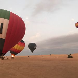 ホテルでピックアップして頂いて、1時間程で砂漠へ。そこからすぐに気球を膨らませて空の旅です。乗る前にトイレが無いので、女性はトイレの我慢が必要。気にしない方は砂漠でどうぞと説明あります。(笑)