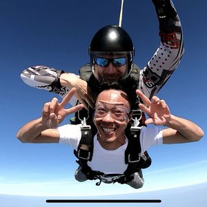 飛行機から落ちるまでが怖かったんですが、落ちている時はカメラマン追うのが精一杯で、でもパラシュートが開くと時間が止まったかのような瞬間があって、その景色が最高で、今でも目に焼き付いています!とても幸せな時間をありがとうございました!