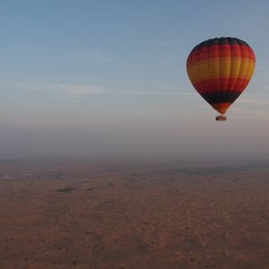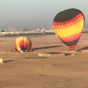 一面砂漠の中上がる朝日と周りに数個あがってる気球とのコントラストは最高でした。
