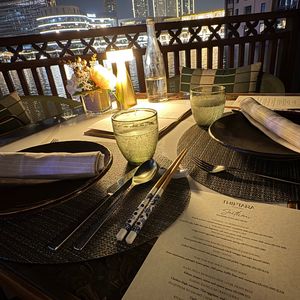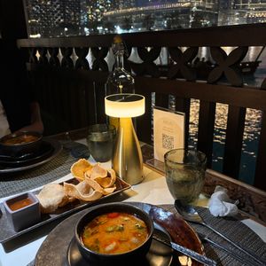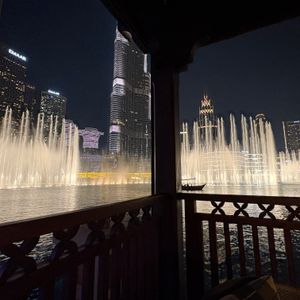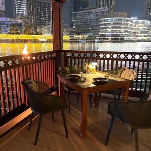 噴水ショーを間近に見られるテラス席で食事しました。魚のコースにしましたが、量がおおいので、すこしもったいなかったかも。日本人が多かったです。ライトアップした、バージュカリファ、噴水ショーは、一度は見ておきたいです。食事は美味しかったです。お肉は食べてません。お肉を食べている人もたくさんいました。