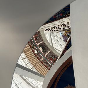 ホテルまで車が迎えに来てくれて、集合場所まで送迎。そこからカートでブルジュ・アル・アラブに行く。一階を見た後、エレベーターで上層階に移動。部屋の案内を受ける。金ぴかの内装で説明によると開業から内装を変えていないということ。映像からしか見ることができないところに実際に行くところがいい。自分は金ぴかすぎて泊まりたいとおは思わないが、他では見ることができないのでドバイに来たという感じがした。眺望もよく、1ドリンクを頼んでいたので飲みながら上層階からドバイの景色を楽しめた。