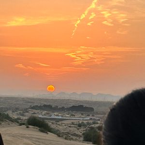 サンライズ砂漠ドライブ朝食付きに参加しました。朝は早くて眠かったですが、宿泊ホテルまでお迎えが来てくれたので砂漠到着まで寝ていられました。砂漠からのサンライズはとても素敵でした。たくさん写真を撮る時間を取ってもらえました。朝食会場まで砂漠ドライブを楽しめますが酔い止めは必須です。ジェットコースターが苦手な方は割高にはなりますが乗り合いではなく車をチャーターした方が良いでしょう。私はチャーターし、酔い止めを飲みましたが酔いました。ドライバーさんが、助手席に座ってシートを倒したらいいよと提案してくれたので楽になりました。朝食は、パンとコーヒーだけかなと期待はしていなかったのですが、野菜ラップかサンドイッチを選び、チョコマフィン、ストロベリースムージー、バナナ、りんご、アラビックコーヒー、デーツの実、水、しっかりと朝食。余った食事は良かったら持って行っていいよとかなりサービスが良かったです。砂漠のツアーをお探しならお勧めです。気さくなドライバー、ムスタファさんありがとうございました。
