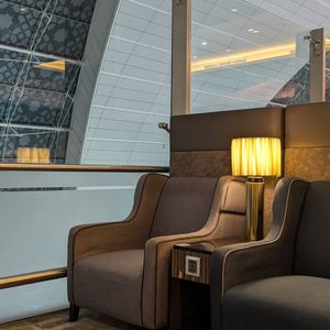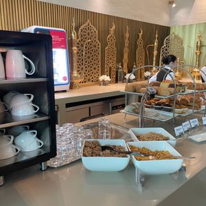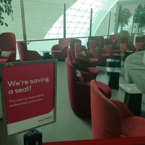 コンコースAを利用。事前予約者専用にスペースが設けられており、人は多いが席は確保できます。しかし、睡眠を取ることは難しいかもしれません。ご飯はまあまあです。アラビアンコーヒーとデーツが美味しかったです。