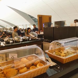 ドバイで5時間のトランジットで利用しました。結構利用者が多く、入店まで30分程並びました。受付で初めての利用だと伝えると、わかりやすく丁寧に説明してくれました。軽食で品数は多くなかったですが、機内食食べたあとなのでそこはこだわりませんでした。1人席もあり、フリードリンクで充電できて、気兼ねなくSNSできて私には快適でした。