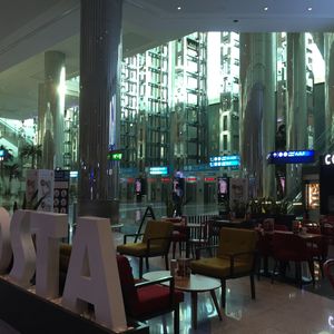リビエラホテル16時のレイトチェックアウトをした後、エミレーツモール内のスキー場、ドバイモール19時の噴水を見学し21時半頃ラウンジに到着。受付にバウチャーを出しましたが、深夜の飛行機で日付がまたいでいることもあり、10分間くらい確認するのに時間がかかりました。この時点でラウンジはガラガラ。
