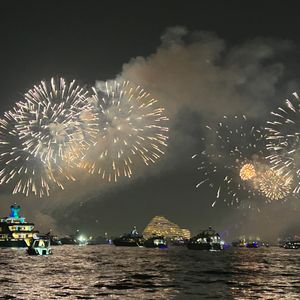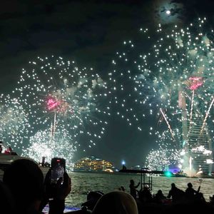 ラバー製のイエローボートに乗って、海上からカウントダウンの花火を見に行ってきました。まったりした花火鑑賞を想定していたのですが、2時間のコースの半分以上がパワーボート航行のスリリングな体験でした。水しぶきはあびるは、少し気持ち悪くもなるはで、少し想像と異なりました。年配の方には不向きだと思います。しかしながら、ボートから見た街並みと花火は最高でした。