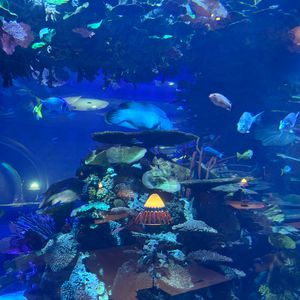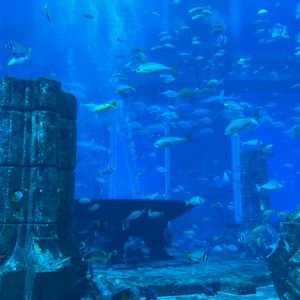 水族館内に巨大な水槽があり、その中には見たことがないくらい沢山の魚が居て、まるで海底から海の中を見ているような光景でした!15分は見ていたと思います。