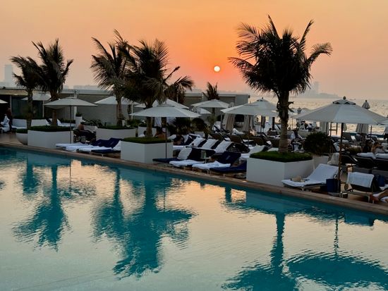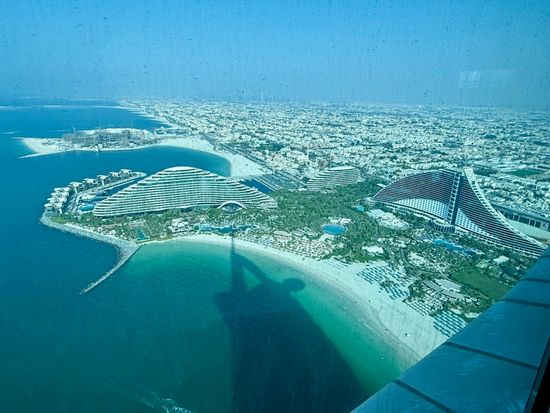 ・15時くらいまでプールで遊び、帰りにパームジュメイラが見渡せるパームタワーの展望台に行きました。展望台から見渡せるパームジュメイラ、ペルシア湾のサンセット、1杯3,000円するプレミアムモルツ笑 となかなか良かったです!