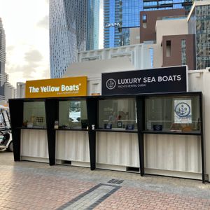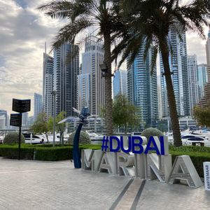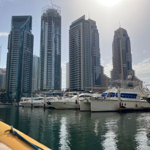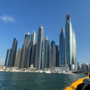 ドバイマリーナでぶらぶらした後、時間になったので外にある窓口でチェックイン。黄色いボートがあったので場所もわかりやすかったです。ツアーがスタートすると、最初の30分はゆっくりマリーナ内を進みます。マリーナはどんどん新しい建物がたつそうで、右に左にここだけでも見所たくさんです。沖に出るとスピードアップし、ドバイの綺麗な海を進みます。各写真スポットでは、スタッフさんが前の席から順にボートの前に呼んで写真を撮ってくれます(強制ではないので、断っている方もいました)。自分達だけの素敵な写真を撮れるのでおすすめです♪ツアー前後は気持ち良いマリーナをお散歩したり、ショッピングモールで買い物したり出来るので、便利なロケーションでした。一点、周りの道は渋滞していたので、時間には余裕を持って向かうことをお勧めします。