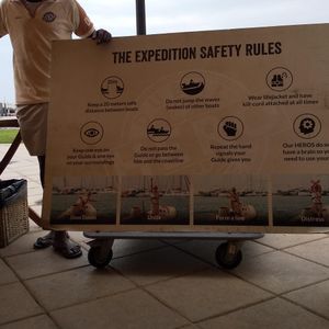 全員がそろうと、スタッフによるブリーフィングが始まります。船の操作方法と運転するコース、注意事項を教えてもらう時間ですが、