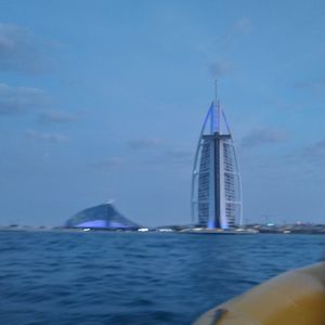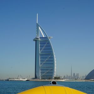 自分でボートのスピードを調整できるので、速さに慣れてからは全速力で海の上を駆け巡りました。暑い日だったので風が気持ちよく、遠くにドバイダウンタウン、バージュアルアラブ、ドバイマリーナのビル群も見渡すことができます。