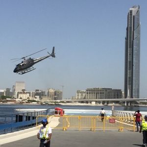ヘリの発着場所はドバイ国際空港近くのドバイクリーク(運河)沿い。ホテルまでの送迎をお願いしたため無事つけましたが、とても分かりづらい場所なので、自力で現地に着くのは至難の技と思います。